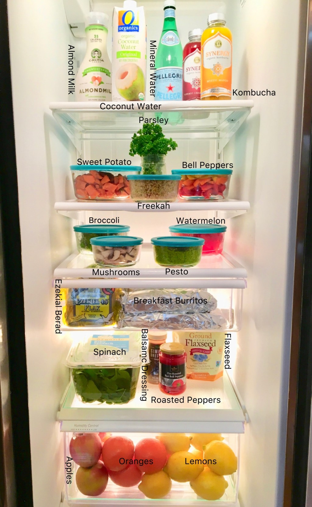 I try to keep primarily healthy options in my refrigerator to avoid grabbing a sub-nutritious option, but let’s be real, you might find the occasional container of chocolate almond milk or blueberry bagels- and I’m okay with that. In addition, you won’t always see my refrigerator meal prepped or completely organized every single week! It all comes back to balance and doing the best you can to lead a healthy lifestyle in this crazy life we lead.